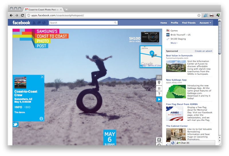Facebook application leveraging twitter, Google Maps, and various other APIs.